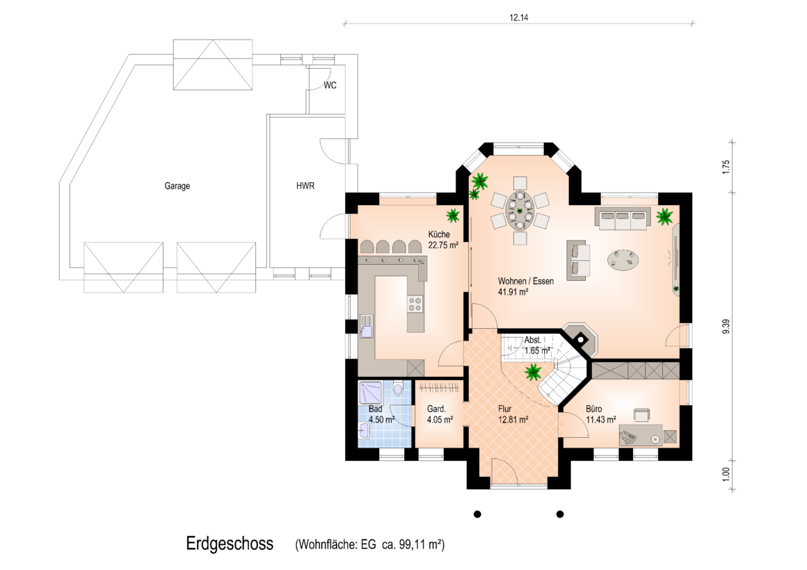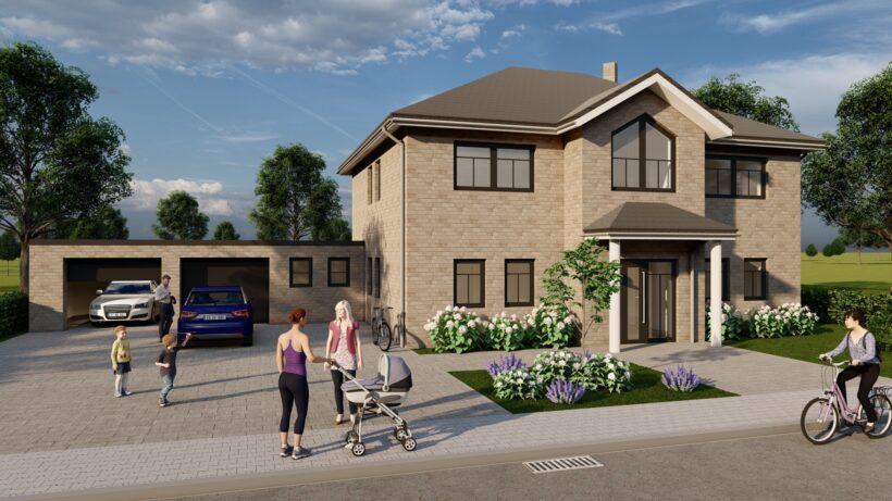 „Delmenhorst„ ist das zeitloses 2 Stock mit einem Walmdach. Dieses Haus erstreckt sich über zwei Geschosse und bietet drei Schlafzimmer sowie zwei Badezimmer. Perfekt geeignet für große Familien, die großzügige Räume lieben. Der Eingangsbereich führt in einen geräumigen Flur, von dem aus die Treppe ins Obergeschoss führt.