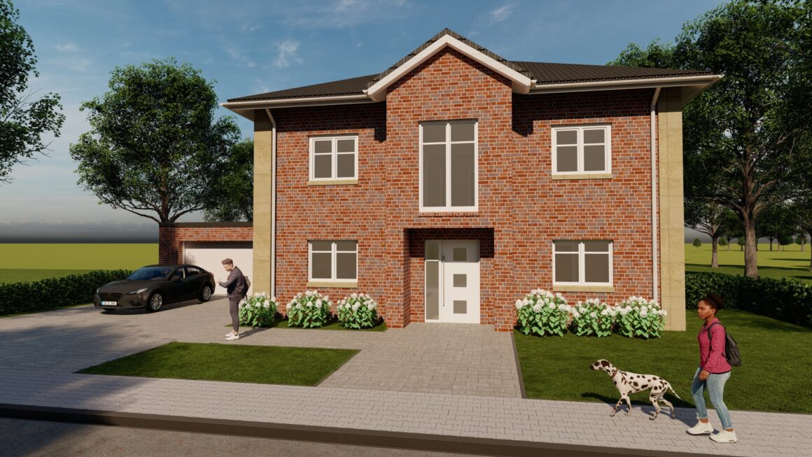 „Jever„ präsentiert sich als zeitloses 2 Stock, das durch ein Walmdach abgerundet wird. Dieses Haus erstreckt sich über zwei Geschosse und bietet drei Schlafzimmer sowie ein Badezimmer. Perfekt geeignet für große Familien, die großzügige Räume lieben. Ein großzügiger Eingangsflur mit zentral platzierter Treppe sorgt für eine einladende Atmosphäre.