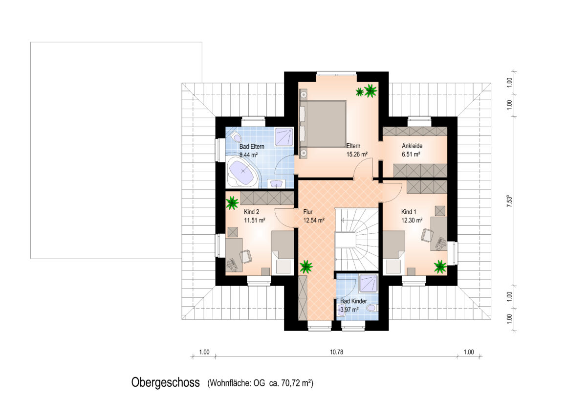 „Nordenham„ ist das zeitloses 2 Stock mit einem Walmdach. Dieses Haus erstreckt sich über zwei Geschosse und bietet drei Schlafzimmer sowie drei Badezimmer. Ideal für mehrgenerationale Familien mit viel Platzbedarf. Ein großzügiger Keller schafft Flexibilität für Hobbys, Lagerung oder private Rückzugsorte. Die zentrale Treppe im Eingangsbereich verbindet alle Ebenen harmonisch miteinander.