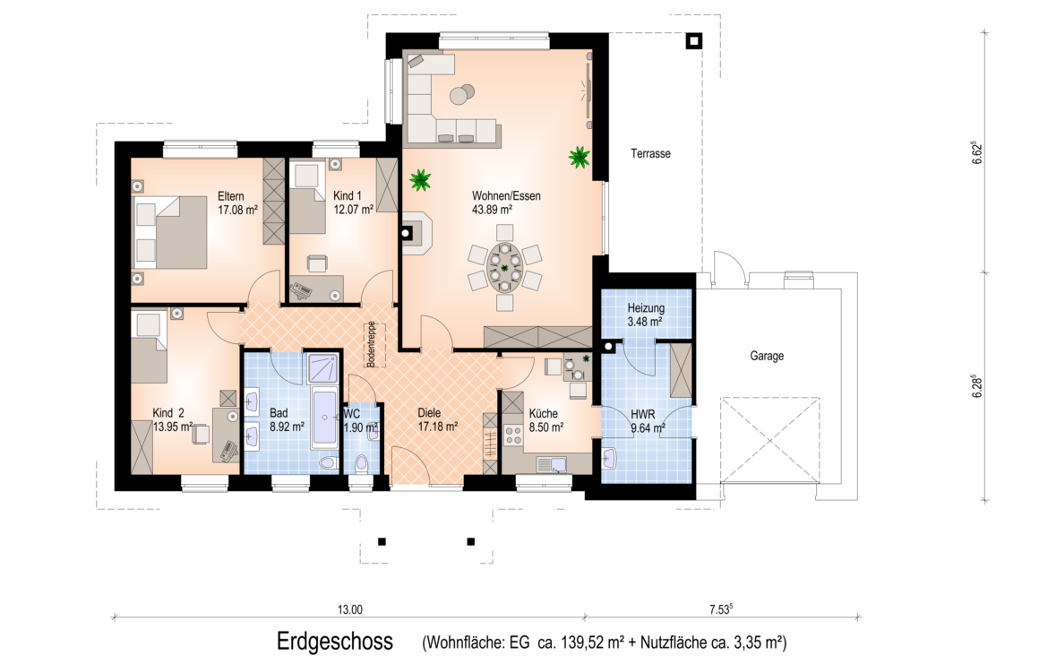 Die ausführlichen Gebäudedaten, Berechnungen, Brutto-Rauminhalte und den Gesamtplan als Download erhalten Sie für nur