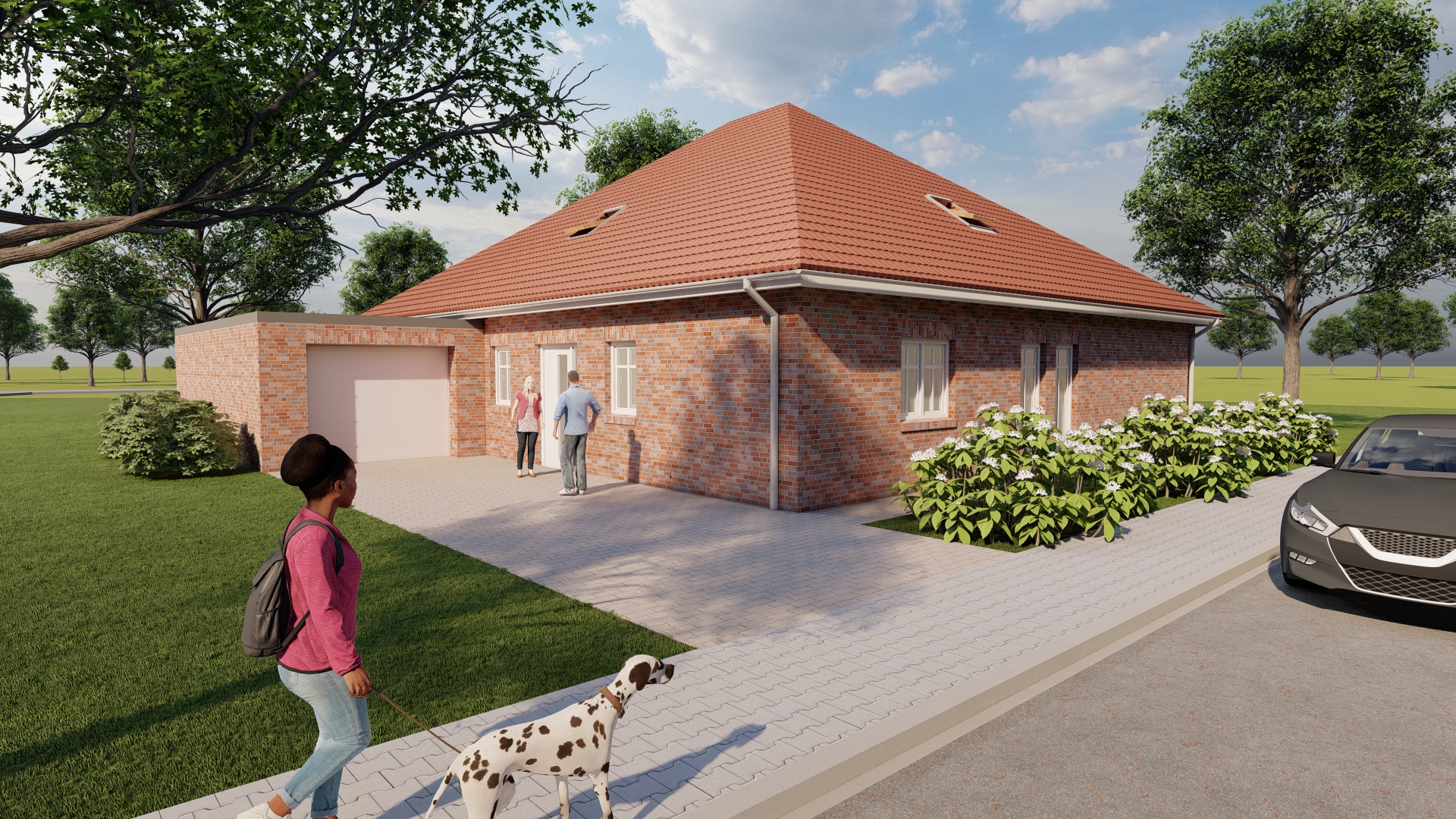 „Borkum„ präsentiert sich als zeitloser Bungalow, das durch ein Walmdach abgerundet wird. Zwei Schlafzimmer und zwei Badezimmer verteilen sich auf ein Ebenen. Eine ausgezeichnete Wahl für die erste eigene Wohnung. Eine moderne Wohnküche bietet viel Platz für gemeinsame Kochabende und gemütliche Gespräche.