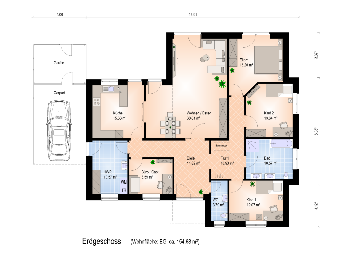 „Walsrode„ präsentiert sich als zeitloser Bungalow, das durch ein Pultdach abgerundet wird. Dieses Haus erstreckt sich über ein Geschosse und bietet drei Schlafzimmer sowie ein Badezimmer. Perfekt für Singles oder kompakte Haushalte.