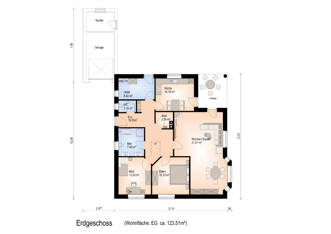 „Wunstorf„ ist das zeitloser Bungalow mit einem Walmdach. Zwei Schlafzimmer und ein Badezimmer verteilen sich auf ein Ebenen. Eine ausgezeichnete Wahl für die erste eigene Wohnung.